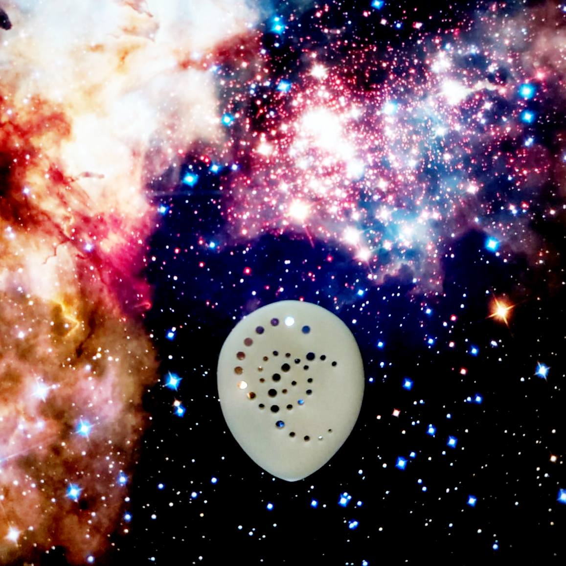 (The drilling of the ‘Gianfranco Continenza Custom’ guitar pick is inspired by the perfect shapes of Nature: stars, orbiting systems and … dust. Human beings are made of an extraordinary matter: stardust. In our DNA is hidden the same fiber that constitutes the bright stars and the darkness of the universe, which are inspired by infinity every night. This pick was born from the collaboration between Gianfranco Continenza [guitarist, composer, arranger and teacher] and Goodvibepicks. The material is always Tagua, the dimensions are always the same except for the thickness which has been brought to about 2 mm.).