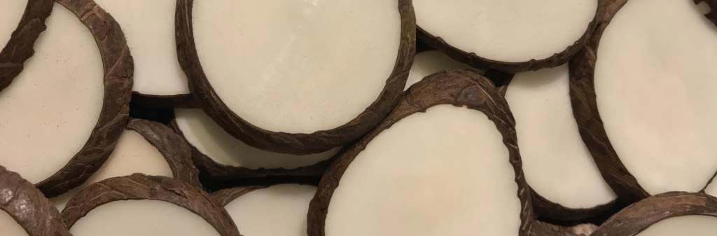 It is obtained starting from the seeds of a palm tree that grows wild in Central America, mainly in Colombia and Ecuador, which when ripe have a translucent and gelatinous pulp that, if dried slowly (about a month), it becomes very hard, acquiring a creamy white color and the characteristic veins that make it look like ivory: for this reason it is also called ‘vegetable ivory’.